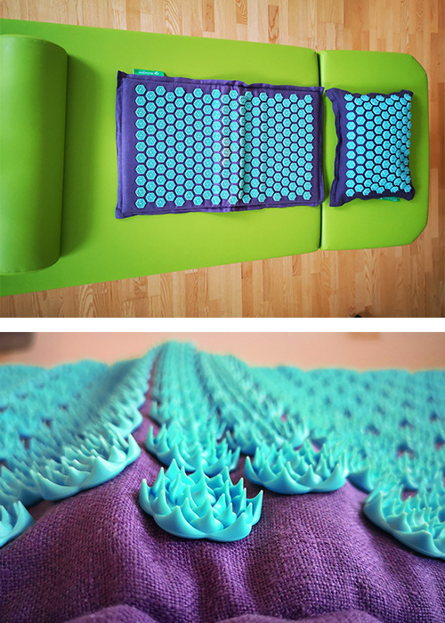 Die Akupressurmatte verbessert die Blutzirkulation. Sie wird eingesetzt zur Lösung von Verspannungen, zur Schmerzlinderung sowie zur Stressreduktion.